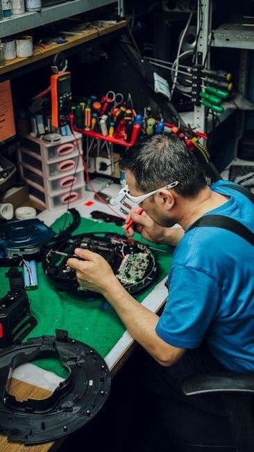 Look for any evidence of water intrusion‚ which can cause corrosion and short circuits. Check for any melted or discolored components‚ indicating overheating. Document any visual anomalies found during this step‚ as they can provide valuable clues during further troubleshooting.